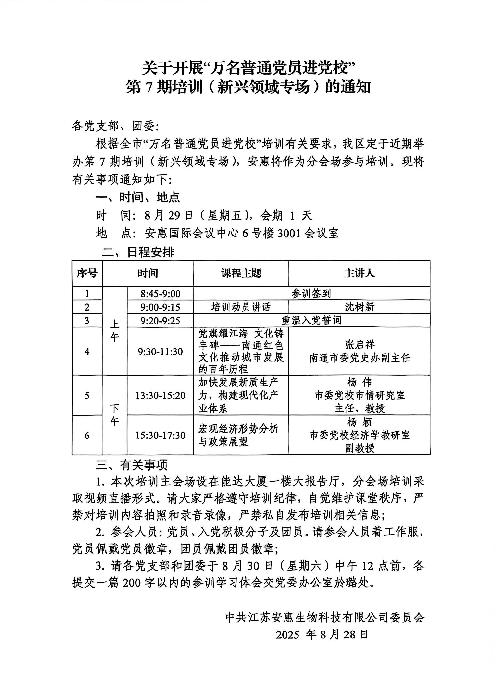 關(guān)于開(kāi)展“萬(wàn)名普通黨員進(jìn)黨校” 第7期培訓(xùn)(新興領(lǐng)域?qū)?chǎng))的通知